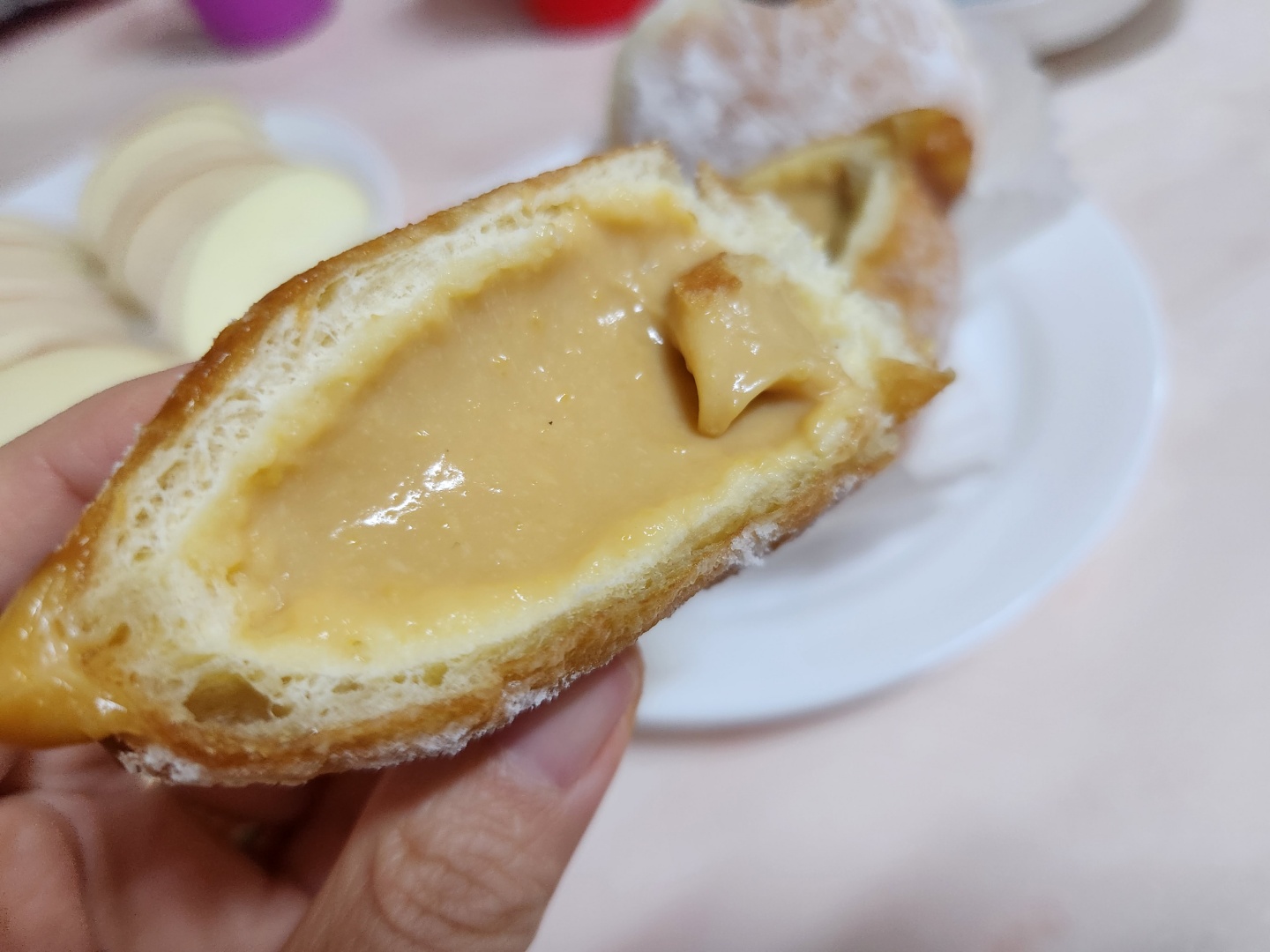 가장 놀랐던 건 크림이 정말 많이 들어 있다는 점이었어요. 자르는 순간 흘러나올 정도로 넉넉했습니다.