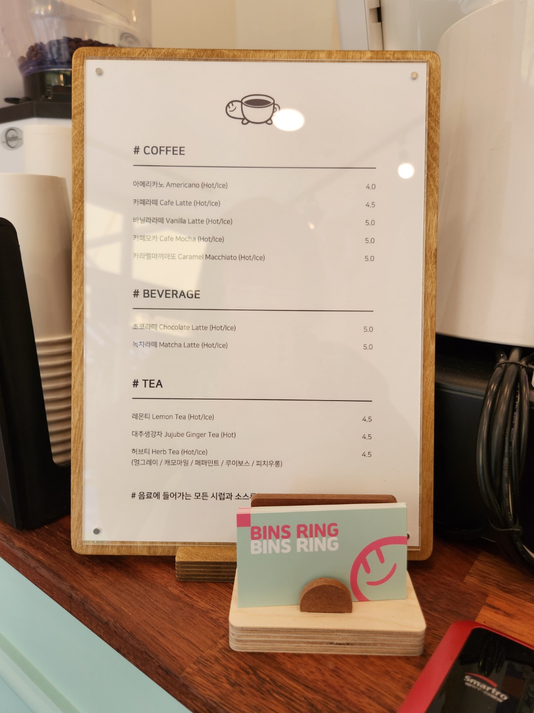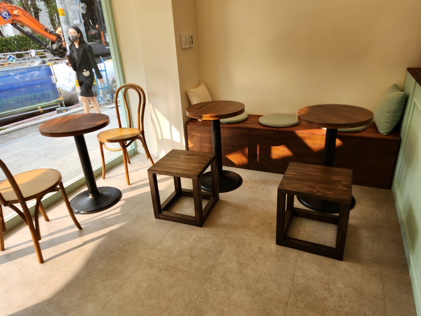 한쪽에는 간단히 먹고 갈 수 있는 테이블도 마련되어 있어서, 포장뿐 아니라 매장에서 바로 맛보기도 좋아 보여요.
