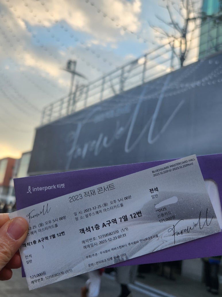 | 2023 적재 콘서트 Farewell / 블루스퀘어 SOL트래블홀 (구 마스터카드홀) 1층 B구역 3열 시야 후기 (1) | 2026.02.20 |
